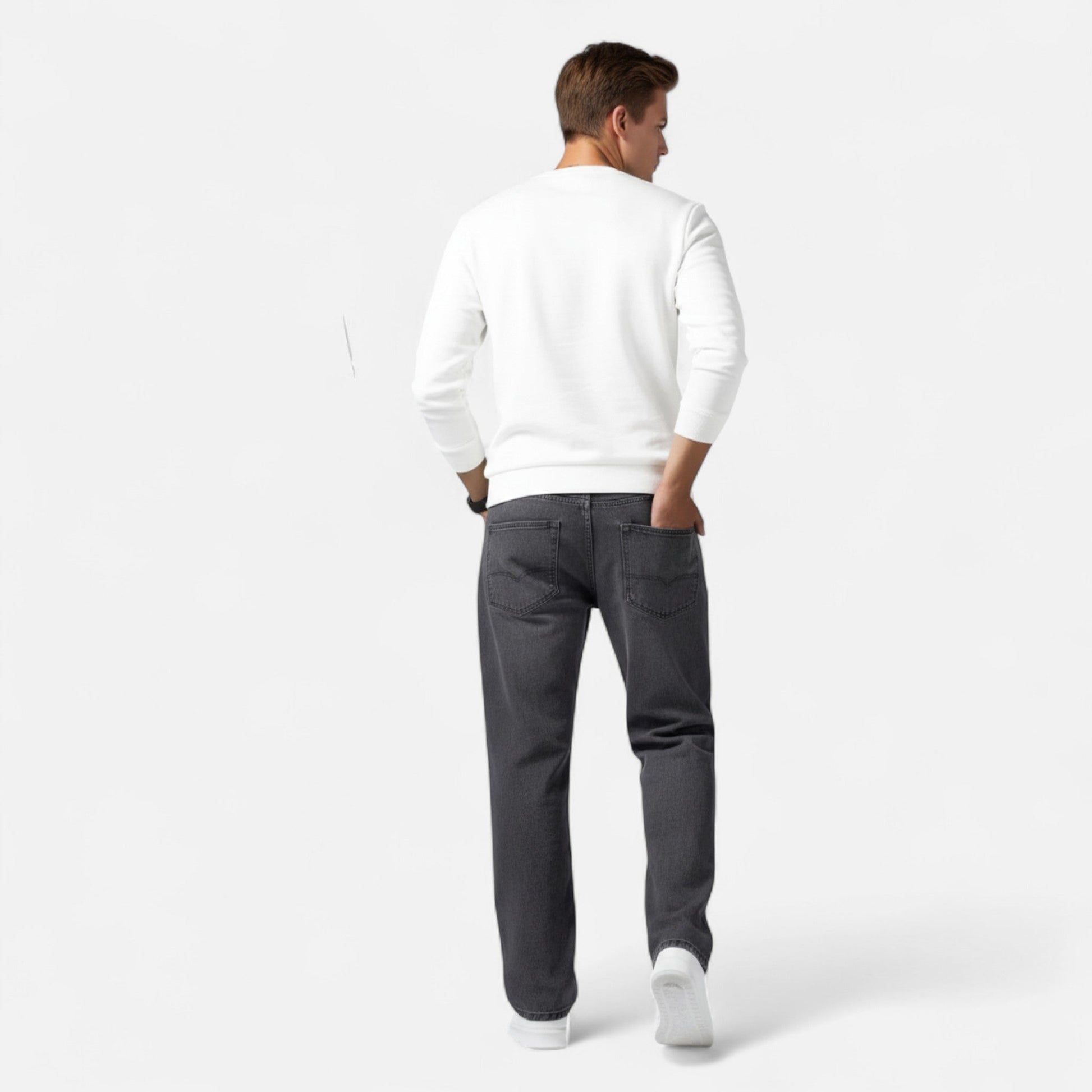 Your jeans are crafted from a durable cotton–polyester denim blend, ensuring comfort and resilience in equal measure. The straight-leg cut offers a relaxed yet refined fit, making them ideal for day-to-day wear across seasons. With their clean, versatile design, they reflect a balance of practicality and quiet luxury.