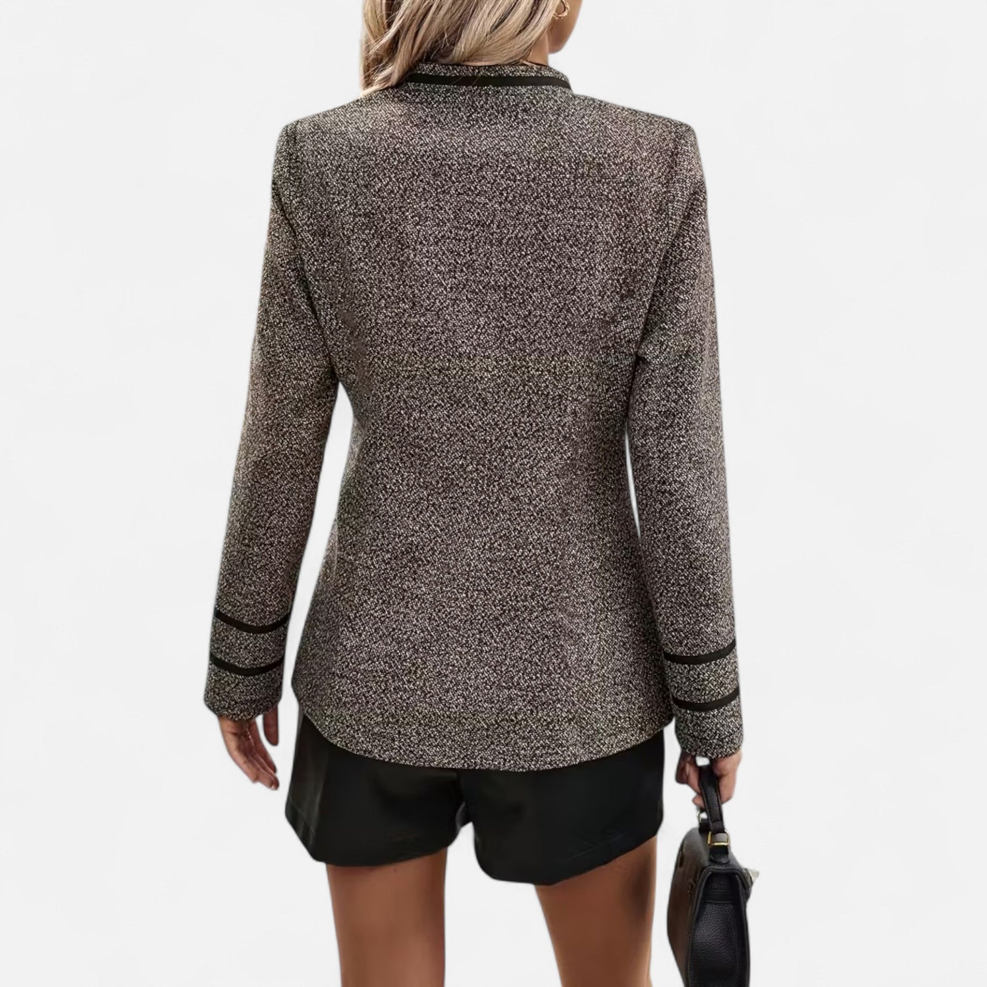 Crafted from finely woven polyester with a subtle elasticity, this blazer offers both structure and comfort. The double-breasted design enhances the tailored fit, creating a polished look that flatters your natural shape. Perfect for professional settings or formal gatherings, it is a wardrobe essential that elevates your presence in every moment.